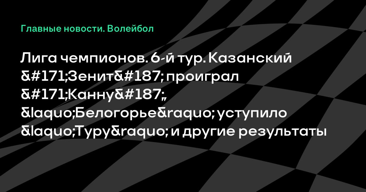Лига чемпионов. 6-й тур. Казанский «Зенит» проиграл «Канну», «Белогорье» уступило «Туру» и другие результаты