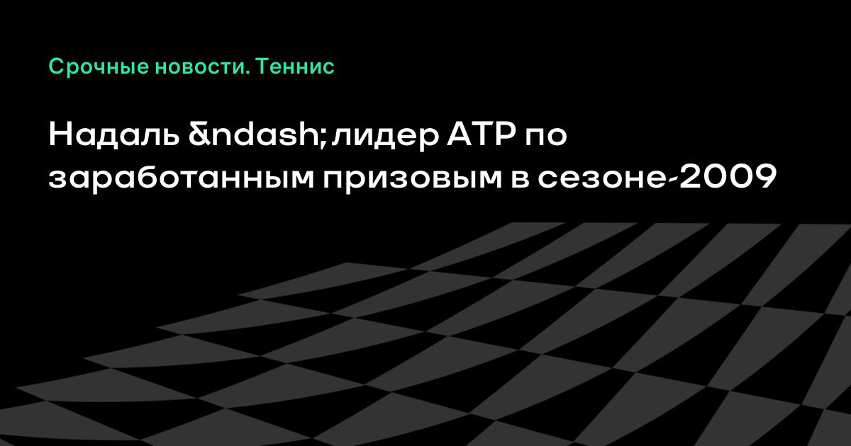 АТР обнародовала список лидеров по количеству заработанных призовых в сезоне-2009. По данным на 5 апреля (в долларах США)