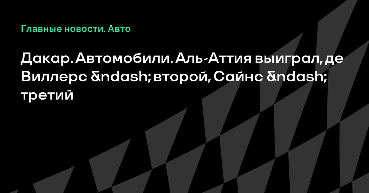 Дакар. Автомобили. Аль-Аттия выиграл, де Виллерс – второй, Сайнс – третий