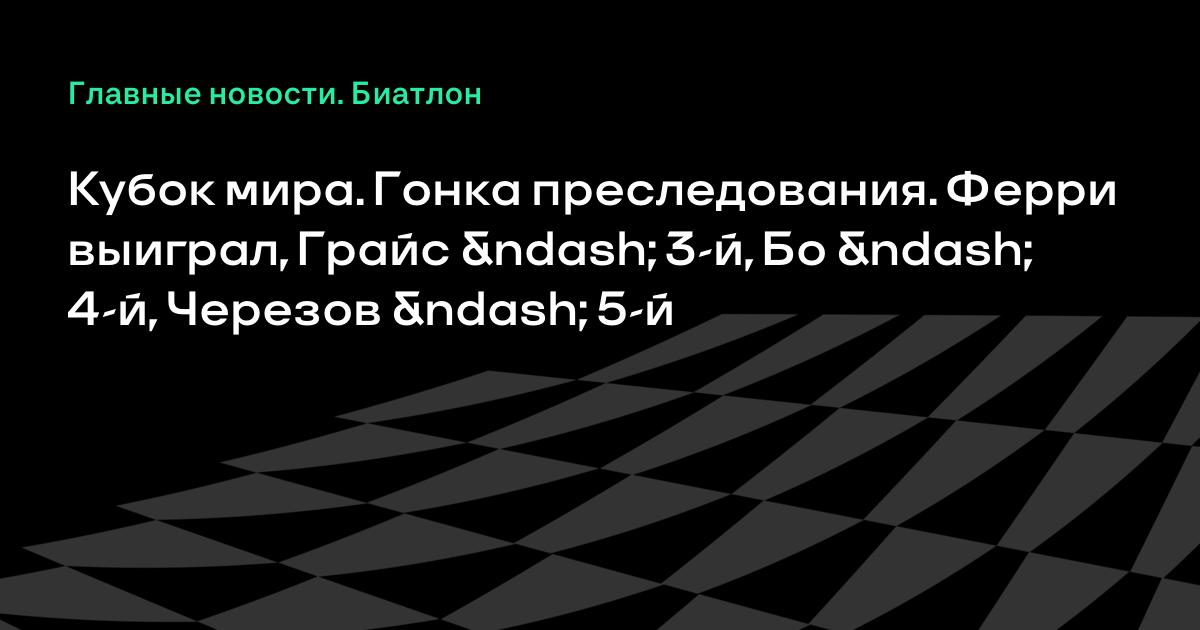 Кубок мира. Гонка преследования. Ферри выиграл, Грайс – 3-й, Бо – 4-й, Черезов – 5-й