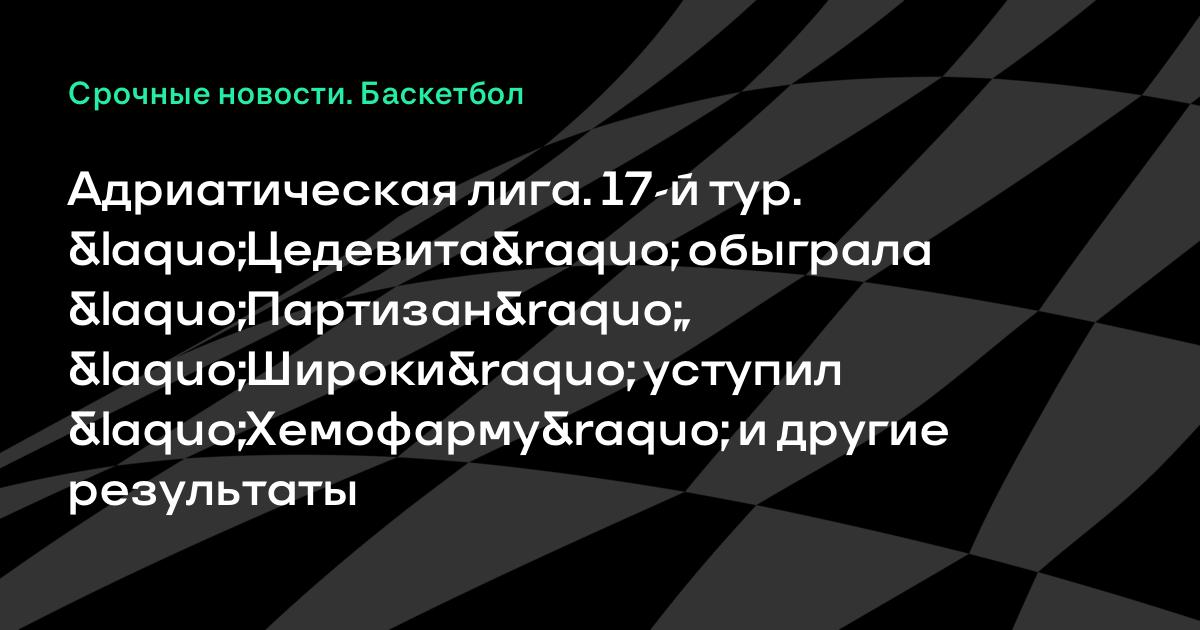 Адриатическая лига. 17-й тур. «Цедевита» обыграла «Партизан», «Широки» уступил «Хемофарму» и другие результаты