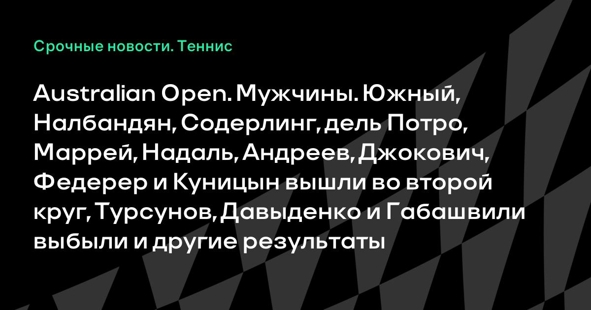 Australian Open. Мужчины. Южный, Налбандян, Содерлинг, дель Потро, Маррей, Надаль, Андреев, Джокович, Федерер и Куницын вышли во второй круг, Турсунов, Давыденко и Габашвили выбыли и другие результаты