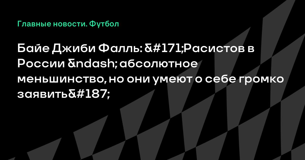 Я уверен, что расистов в России – абсолютное меньшинство, но они умеют о себе громко заявить. Они кучкуются и идут на футбол, чтобы быть заметными, но в то же время иметь возможность раствориться в толпе. В театры и на балет расисты не ходят. -------------------------------------- Он просто не в теме. Расистов у нас большинство, просто многие интеллигентные( и даже не очень) люди это скрывают но в случае любого бытового конфликта это как правило выливается наружу. Вообще если есть расы то есть и расизм, так же как раз есть разница полов то всегда между ними будут определённого вида отношения. Это селяви. А в Африке что расизма нет. Да в иной стране белому человеку и часу не прожить! Не съедят, так замолчат)