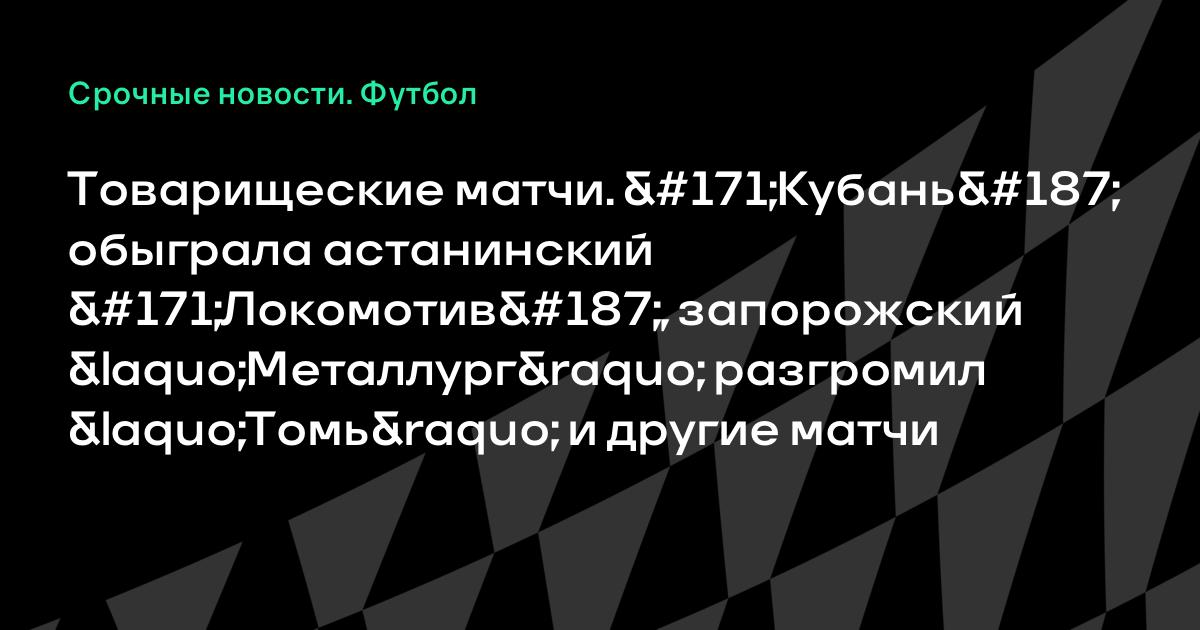 Товарищеские матчи. «Кубань» обыграла астанинский «Локомотив», запорожский «Металлург» разгромил «Томь» и другие матчи