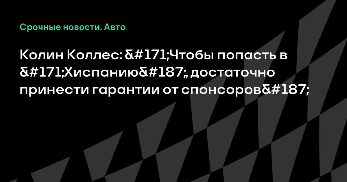 Колин Коллес: «Чтобы попасть в «Хиспанию», достаточно принести гарантии от спонсоров»