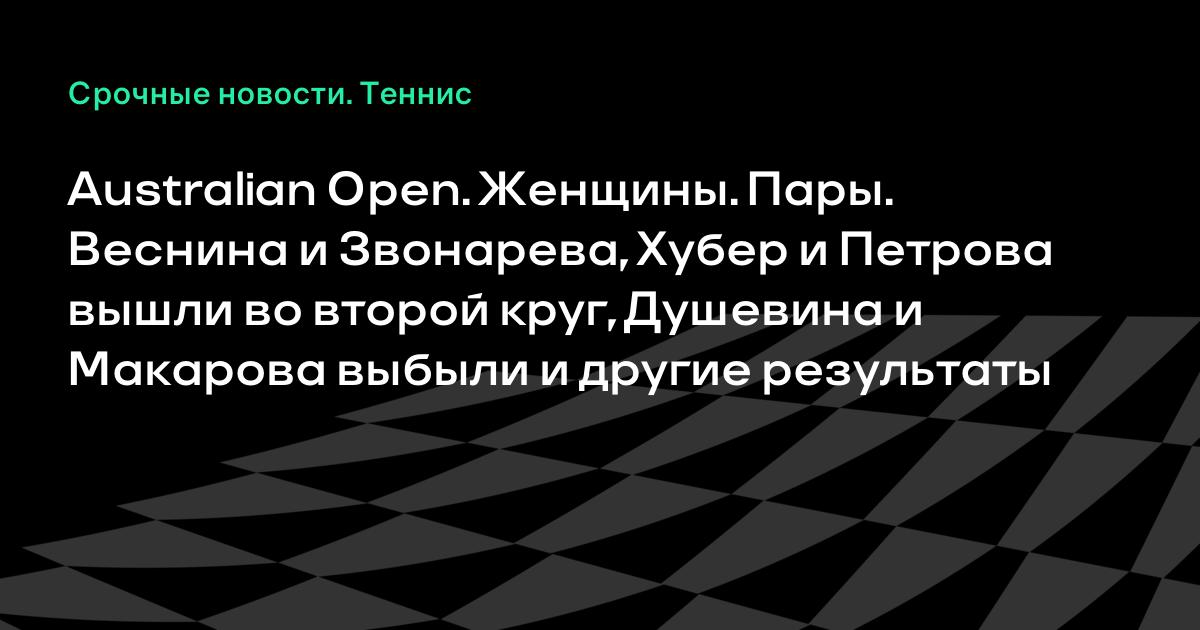 Australian Open. Женщины. Пары. Веснина и Звонарева, Хубер и Петрова вышли во второй круг, Душевина и Макарова выбыли и другие результаты