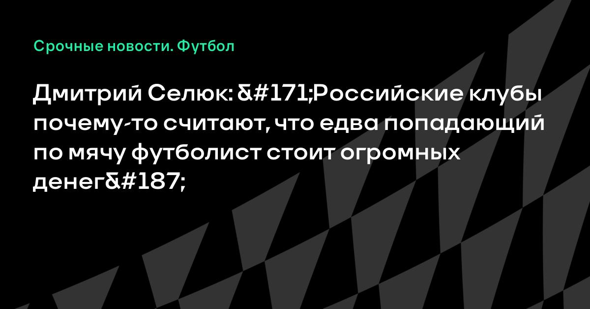Дмитрий Селюк: «Российские клубы почему-то считают, что едва попадающий по мячу футболист стоит огромных денег»