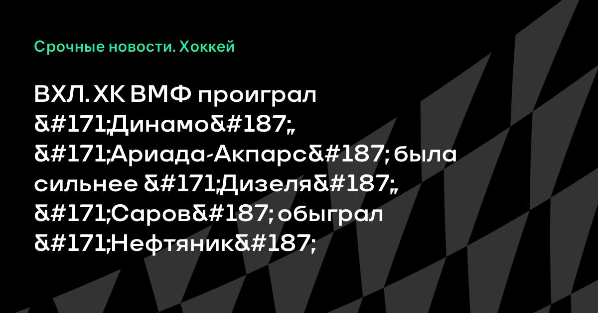 ВХЛ. ХК ВМФ проиграл «Динамо», «Ариада-Акпарс» была сильнее «Дизеля», «Саров» обыграл «Нефтяник»