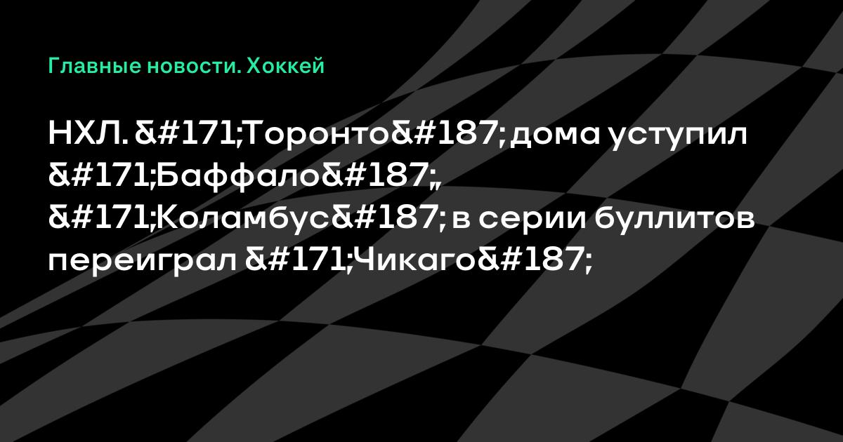 НХЛ. «Торонто» дома уступил «Баффало», «Коламбус» в серии буллитов переиграл «Чикаго»