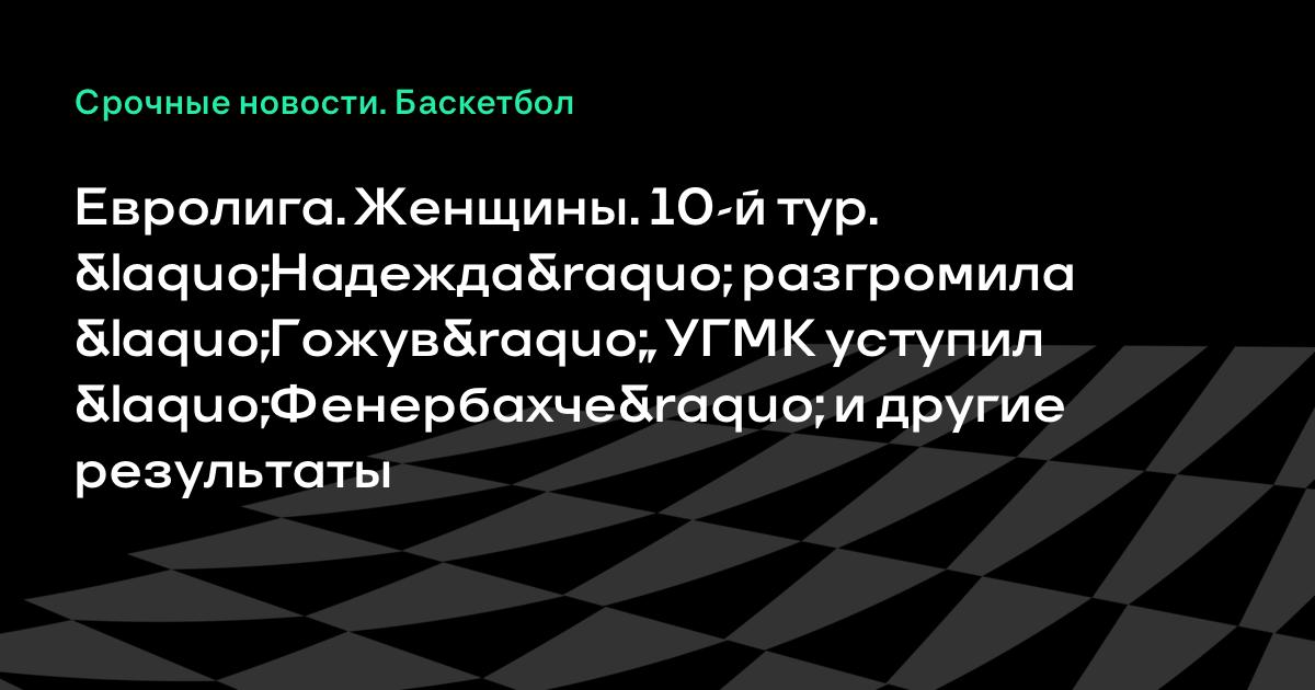 Евролига. Женщины. 10-й тур. «Надежда» разгромила «Гожув», УГМК уступил «Фенербахче» и другие результаты
