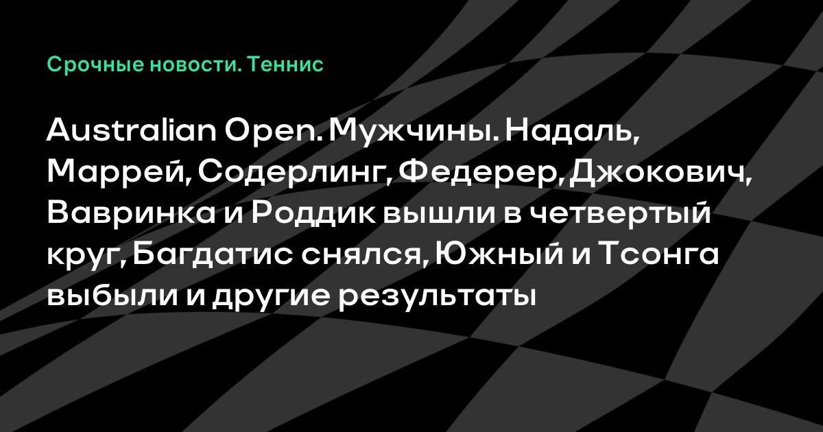 Australian Open. Мужчины. Надаль, Маррей, Содерлинг, Федерер, Джокович, Вавринка и Роддик вышли в четвертый круг, Багдатис снялся, Южный и Тсонга выбыли и другие результаты