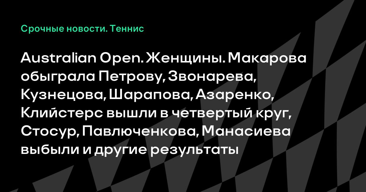Australian Open. Женщины. Макарова обыграла Петрову, Звонарева, Кузнецова, Шарапова, Азаренко, Клийстерс вышли в четвертый круг, Стосур, Павлюченкова, Манасиева выбыли и другие результаты