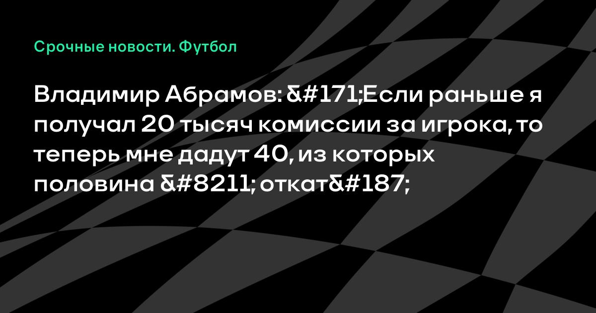 Владимир Абрамов: «Если раньше я получал 20 тысяч комиссии за игрока, то теперь мне дадут 40, из которых половина – откат»