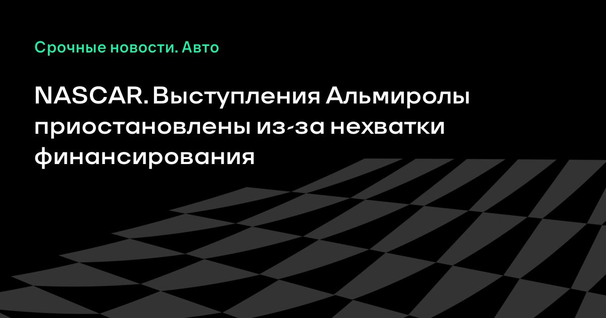 NASCAR. Выступления Альмиролы приостановлены из-за нехватки финансирования