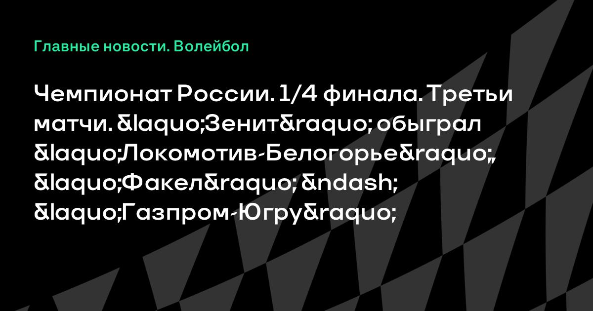 Чемпионат России. 1/4 финала. Третьи матчи. «Зенит» обыграл «Локомотив-Белогорье», «Факел» – «Газпром-Югру»