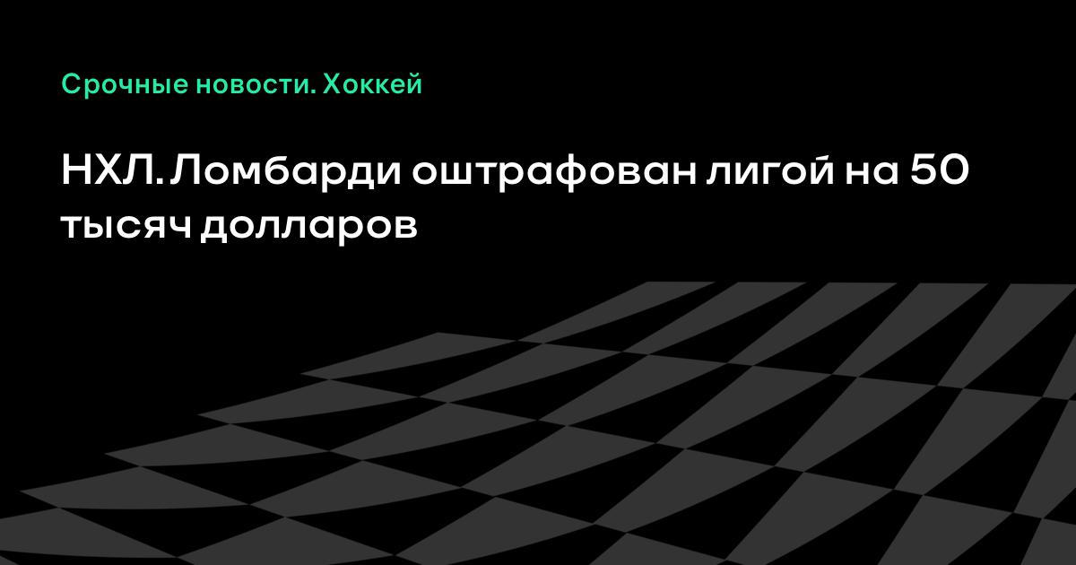 НХЛ. Ломбарди оштрафован лигой на 50 тысяч долларов