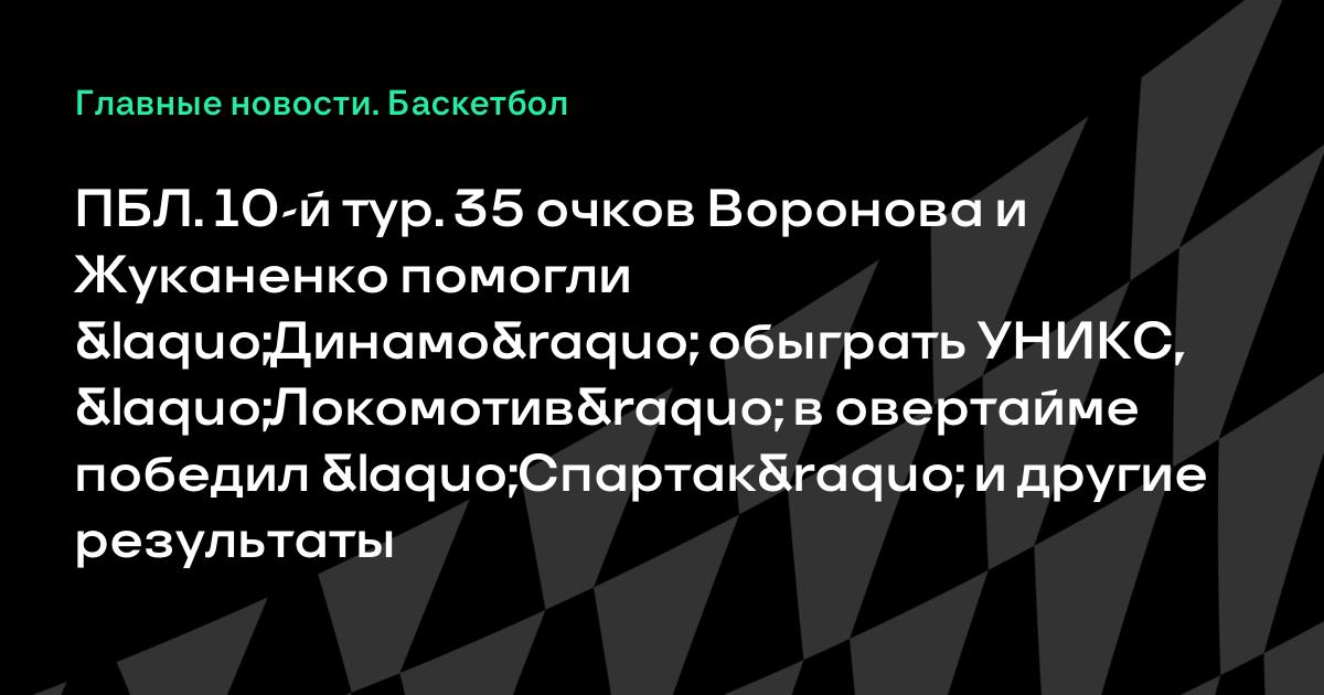 ПБЛ. 10-й тур. 35 очков Воронова и Жуканенко помогли «Динамо» обыграть УНИКС, «Локомотив» в овертайме победил «Спартак» и другие результаты