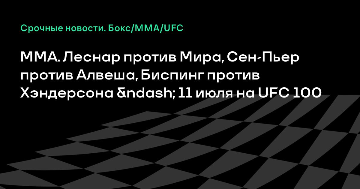 MMA. Леснар против Мира, Сен-Пьер против Алвеша, Биспинг против Хэндерсона – 11 июля на UFC 100