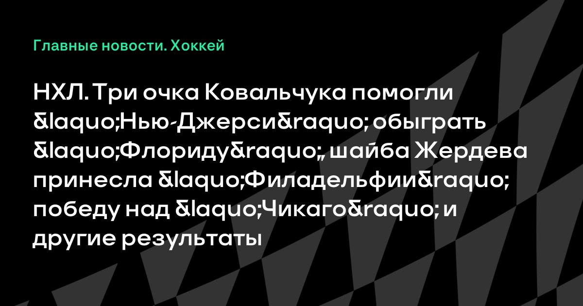 НХЛ. Три очка Ковальчука помогли «Нью-Джерси» обыграть «Флориду», шайба Жердева принесла «Филадельфии» победу над «Чикаго» и другие результаты