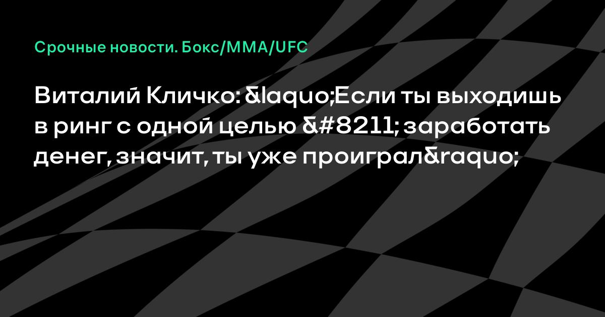 Виталий Кличко: «Если ты выходишь в ринг с одной целью – заработать денег, значит, ты уже проиграл»