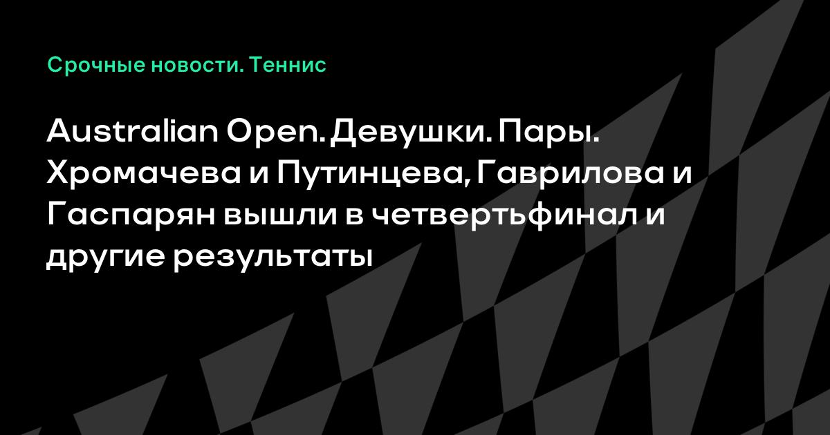 Australian Open. Девушки. Пары. Хромачева и Путинцева, Гаврилова и Гаспарян вышли в четвертьфинал и другие результаты