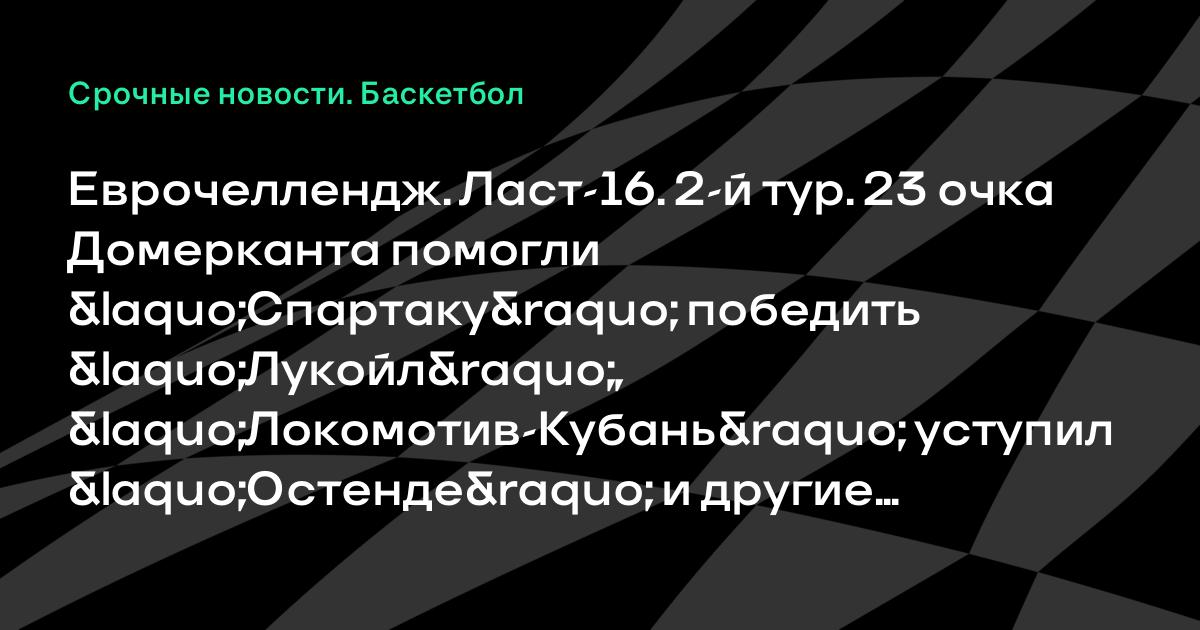Еврочеллендж. Ласт-16. 2-й тур. 23 очка Домерканта помогли «Спартаку» победить «Лукойл», «Локомотив-Кубань» уступил «Остенде» и другие результаты