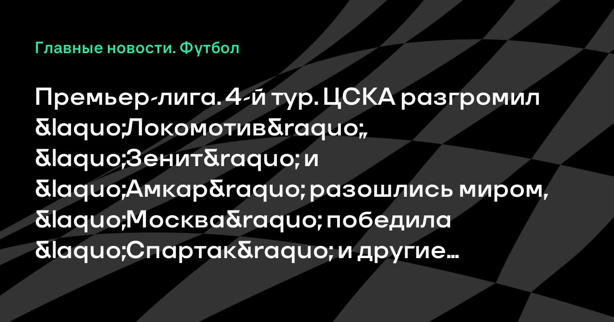 Премьер-лига. 4-й тур. ЦСКА разгромил «Локомотив», «Зенит» и «Амкар» разошлись миром, «Москва» победила «Спартак» и другие результаты