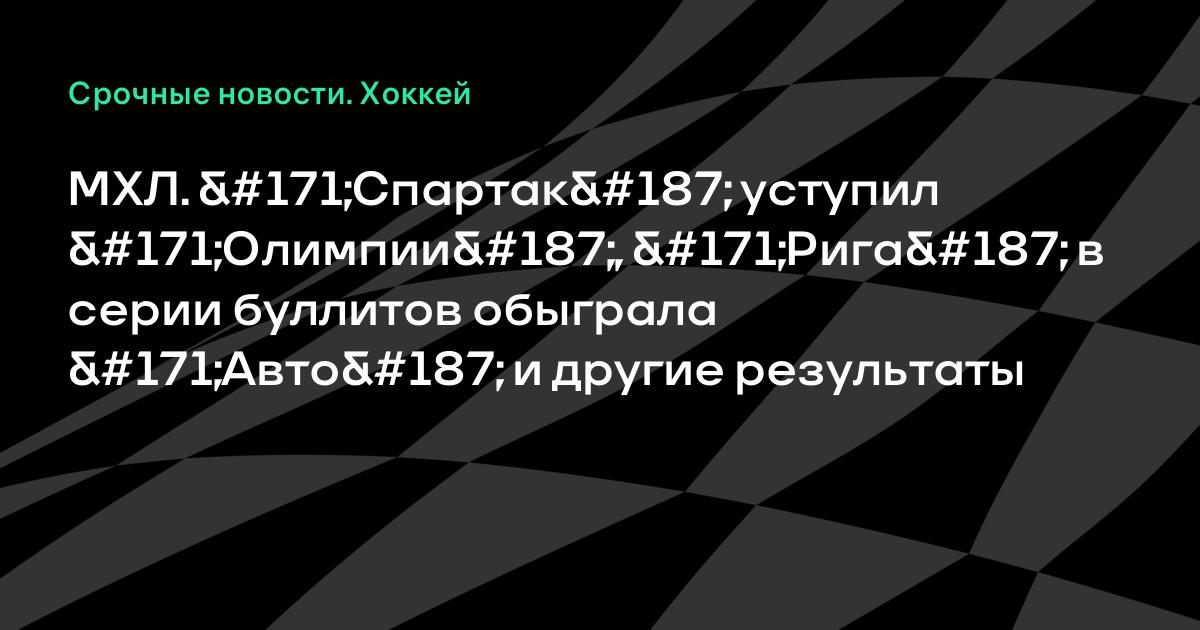 МХЛ. «Спартак» уступил «Олимпии», «Рига» в серии буллитов обыграла «Авто» и другие результаты