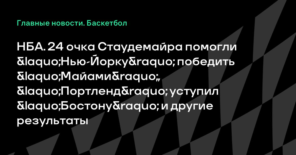 НБА. 24 очка Стаудемайра помогли «Нью-Йорку» победить «Майами», «Портленд» уступил «Бостону» и другие результаты