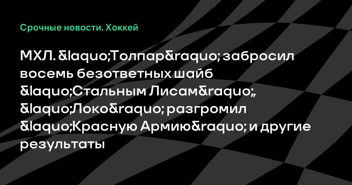 МХЛ. «Толпар» забросил восемь безответных шайб «Стальным Лисам», «Локо» разгромил «Красную Армию» и другие результаты