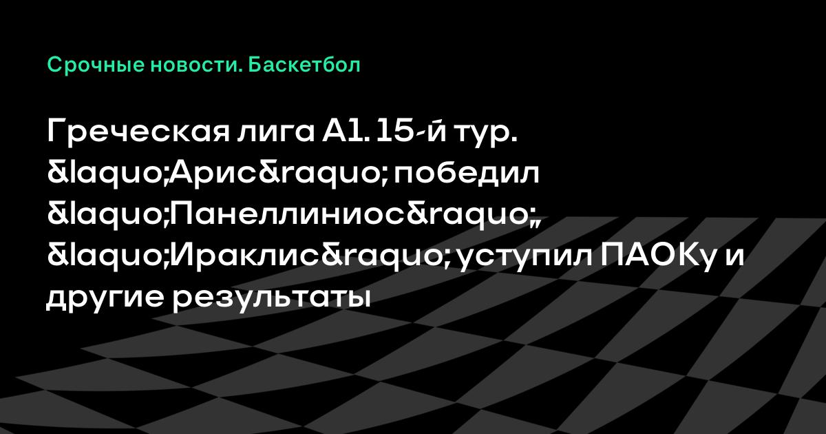 Греческая лига А1. 15-й тур. «Арис» победил «Панеллиниос», «Ираклис» уступил ПАОКу и другие результаты