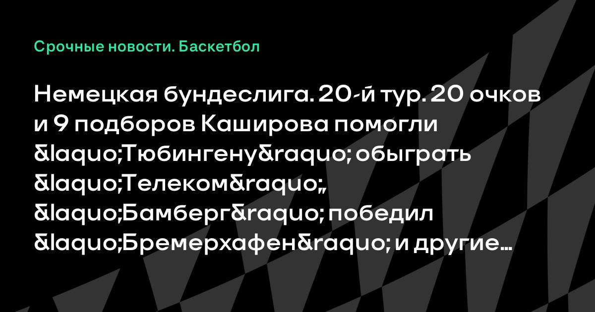 Немецкая бундеслига. 20-й тур. 20 очков и 9 подборов Каширова помогли «Тюбингену» обыграть «Телеком», «Бамберг» победил «Бремерхафен» и другие результаты