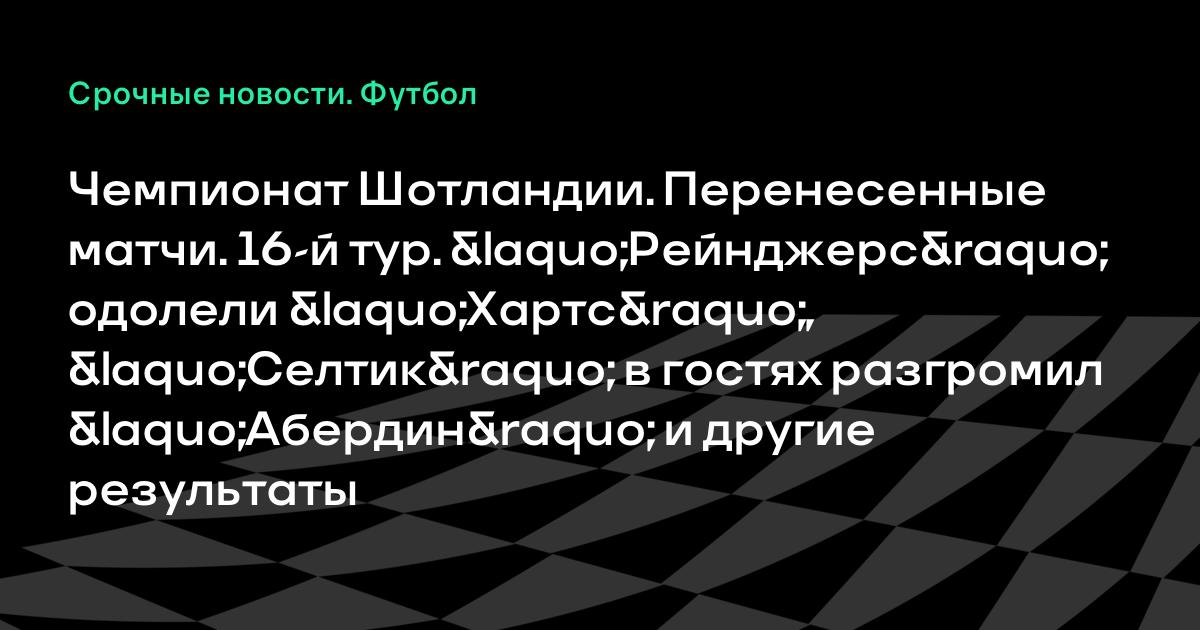 Чемпионат Шотландии. Перенесенные матчи. 16-й тур. «Рейнджерс» одолели «Хартс», «Селтик» в гостях разгромил «Абердин» и другие результаты