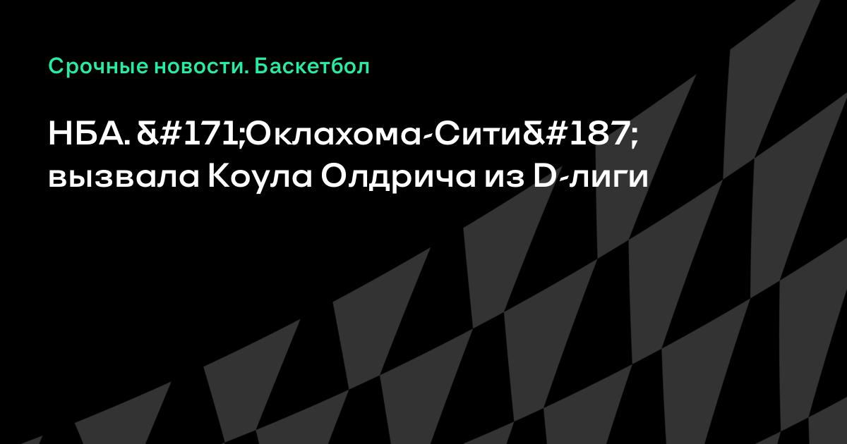 «Оклахома-Сити» вызвала центрового Коула Олдрича из D-лиги, информирует АР.