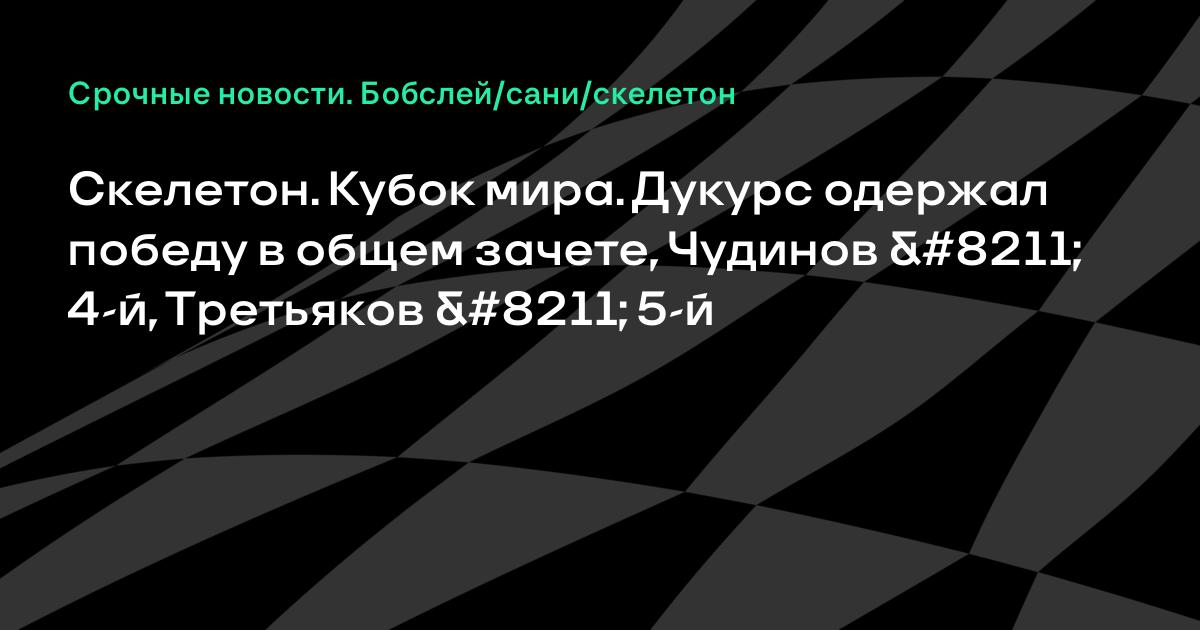 Скелетон. Кубок мира. Дукурс одержал победу в общем зачете, Чудинов – 4-й, Третьяков – 5-й
