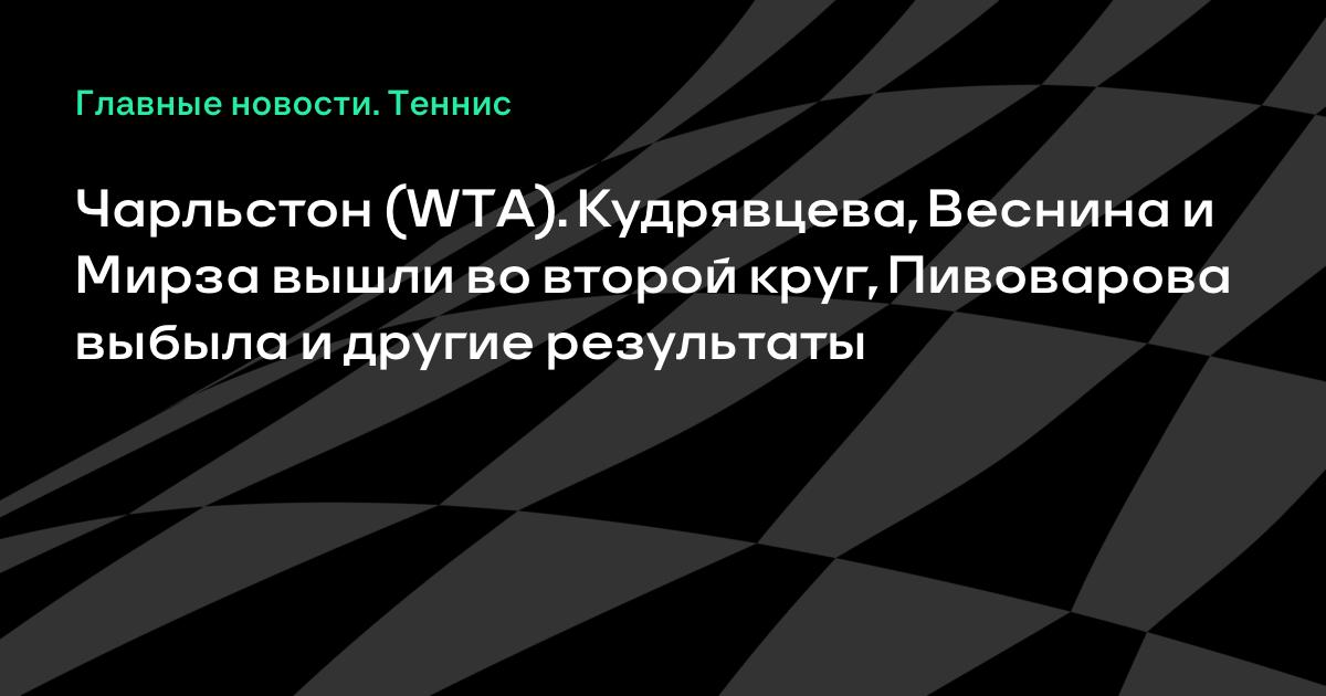 Чарльстон (WTA). Кудрявцева, Веснина и Мирза вышли во второй круг, Пивоварова выбыла и другие результаты