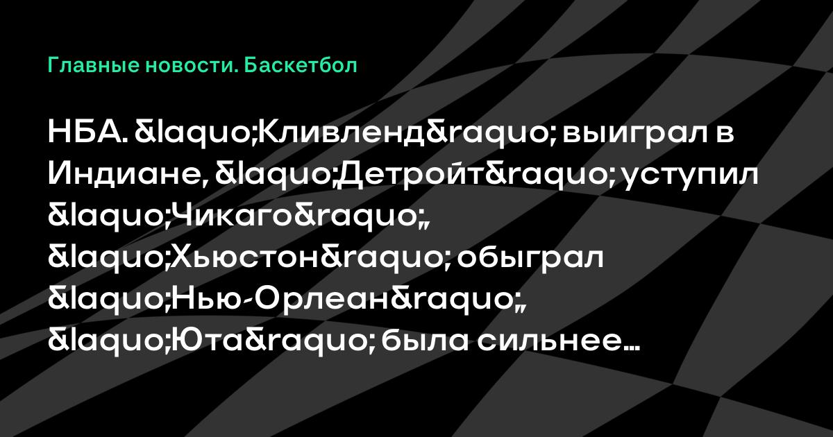 НБА. «Кливленд» выиграл в Индиане, «Детройт» уступил «Чикаго», «Хьюстон» обыграл «Нью-Орлеан», «Юта» была сильнее «Клипперс» и другие результаты