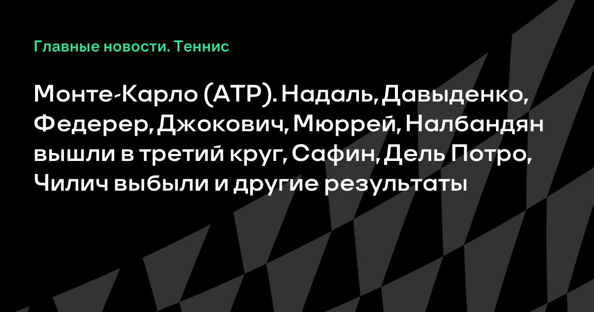 Монте-Карло (АТР). Надаль, Давыденко, Федерер, Джокович, Мюррей, Налбандян вышли в третий круг, Сафин, Дель Потро, Чилич выбыли и другие результаты