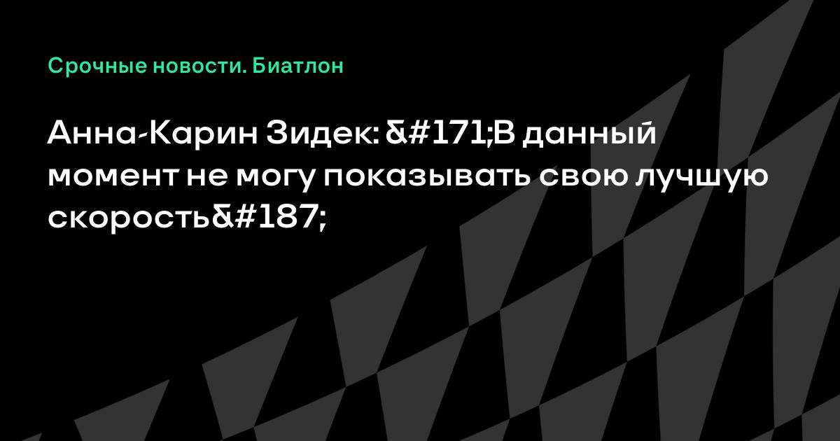 Анна-Карин Зидек: «В данный момент не могу показывать свою лучшую скорость»