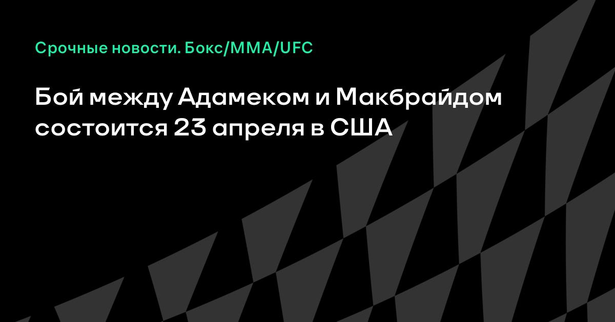 Бой между Адамеком и Макбрайдом состоится 23 апреля в США
