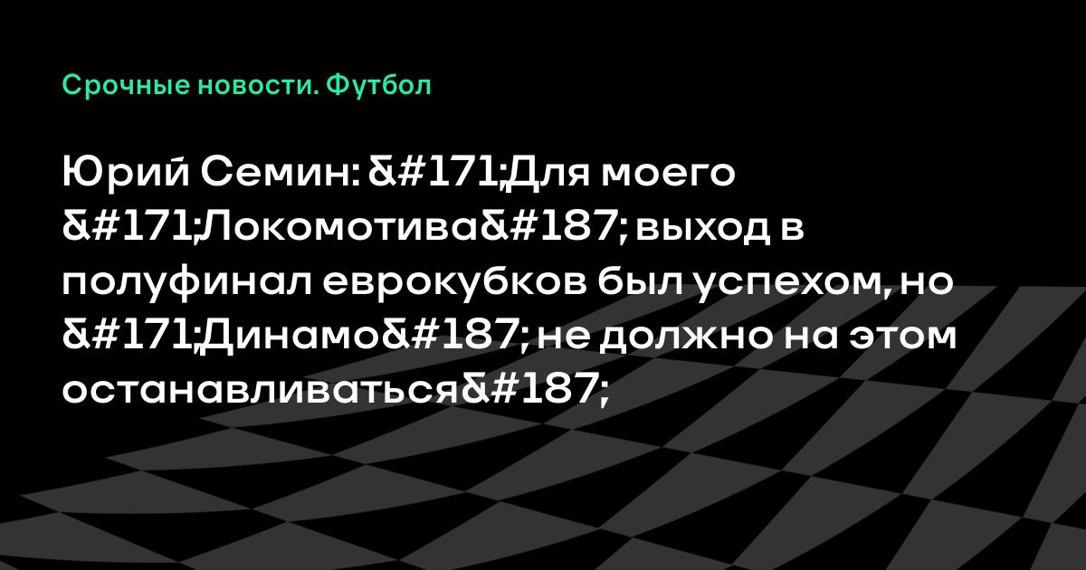 Юрий Семин: «Для моего «Локомотива» выход в полуфинал еврокубков был успехом, но «Динамо» не должно на этом останавливаться»
