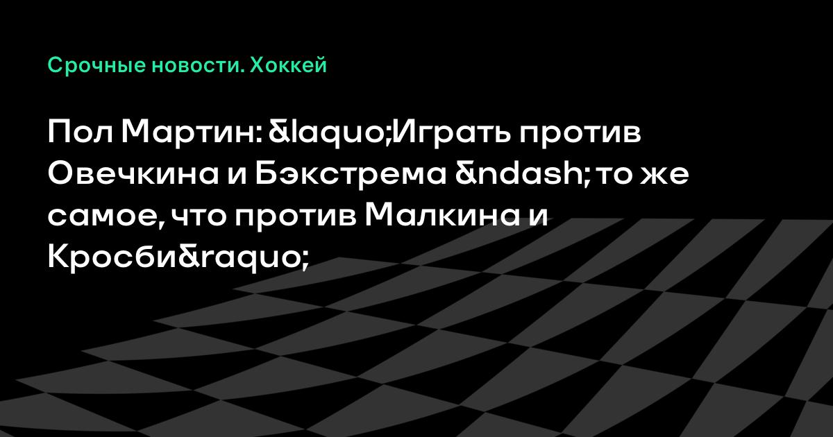 Пол Мартин: «Играть против Овечкина и Бэкстрема – то же самое, что против Малкина и Кросби»