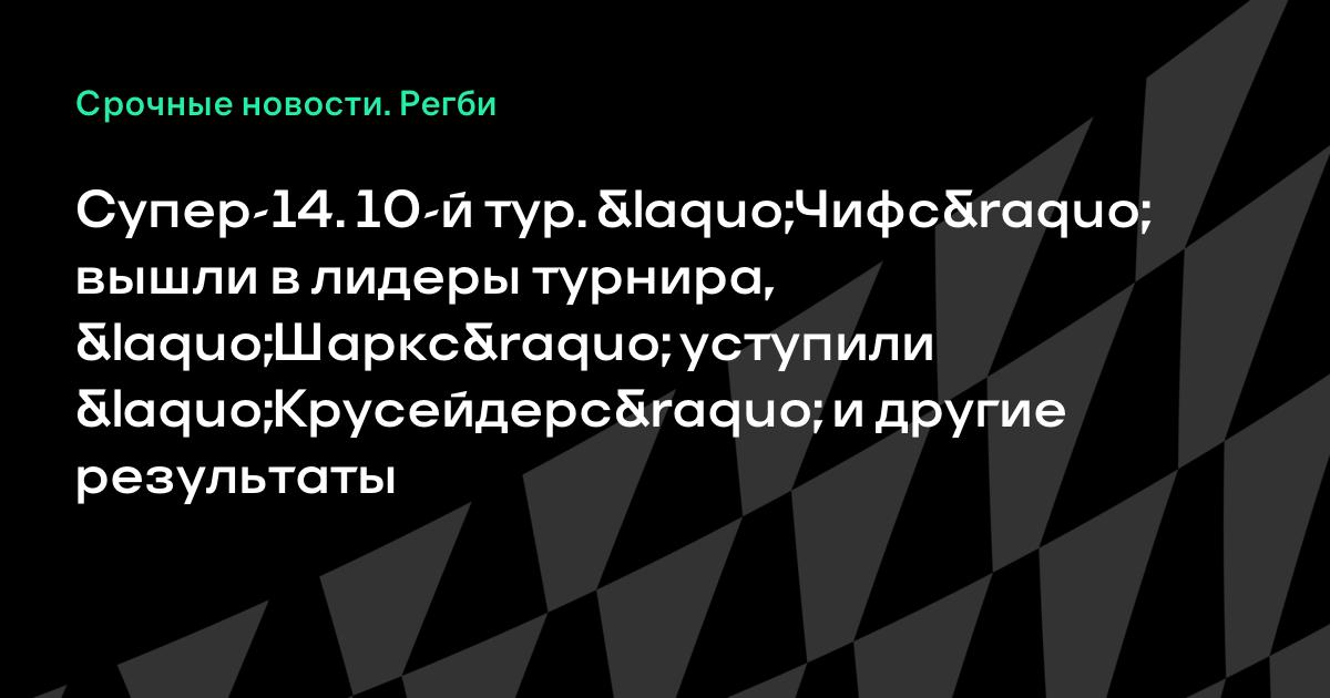 Супер-14. 10-й тур. «Чифс» вышли в лидеры турнира, «Шаркс» уступили «Крусейдерс» и другие результаты
