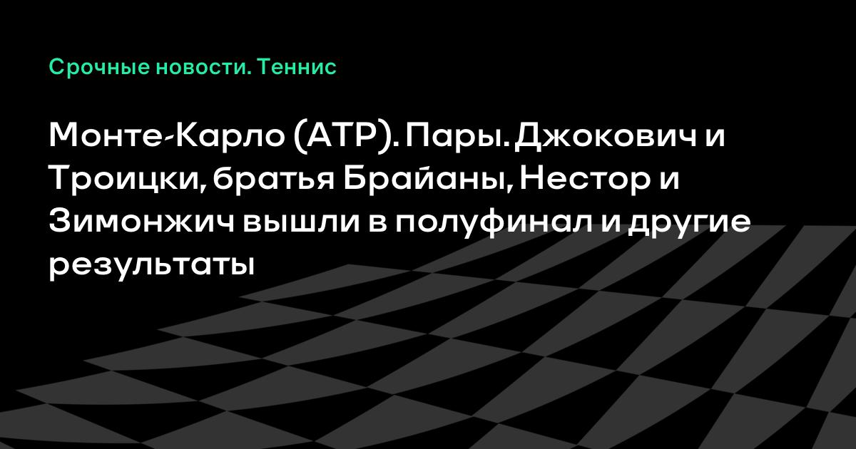 Монте-Карло (АТР). Пары. Джокович и Троицки, братья Брайаны, Нестор и Зимонжич вышли в полуфинал и другие результаты