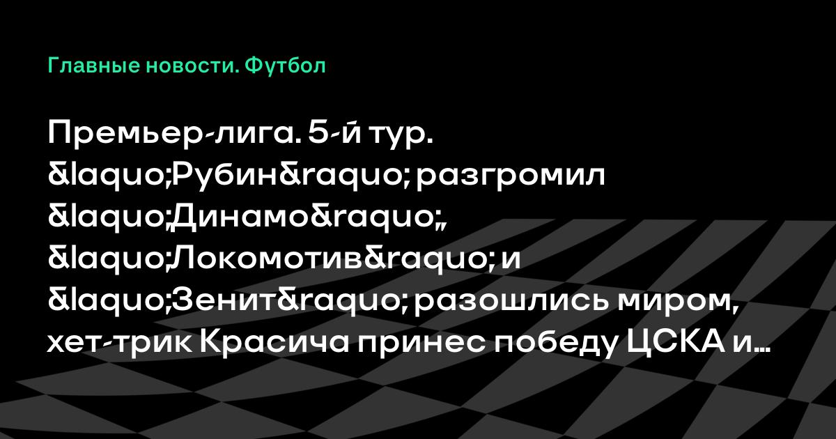 Премьер-лига. 5-й тур. «Рубин» разгромил «Динамо», «Локомотив» и «Зенит» разошлись миром, хет-трик Красича принес победу ЦСКА и другие результаты