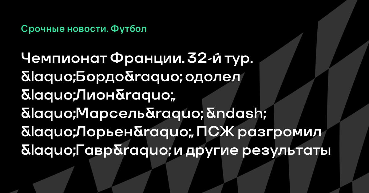 Чемпионат Франции. 32-й тур. «Бордо» одолел «Лион», «Марсель» – «Лорьен», ПСЖ разгромил «Гавр» и другие результаты