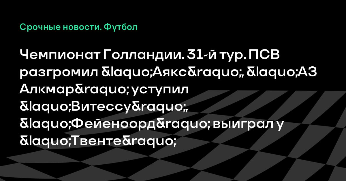 Чемпионат Голландии. 31-й тур. ПСВ разгромил «Аякс», «АЗ Алкмар» уступил «Витессу», «Фейеноорд» выиграл у «Твенте»