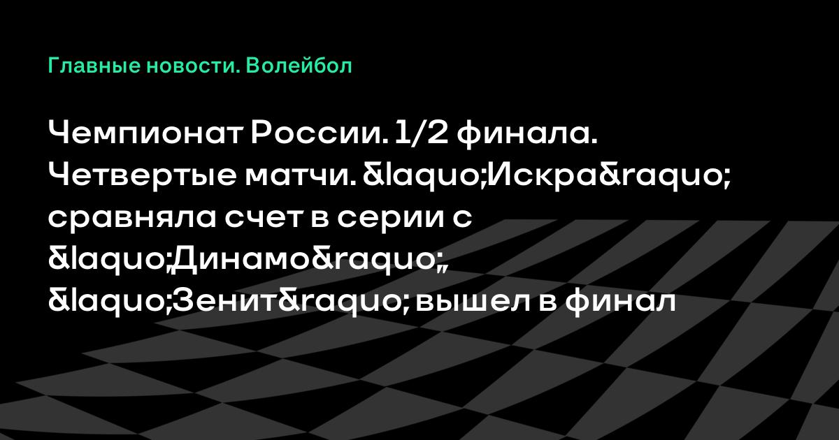 Чемпионат России. 1/2 финала. Четвертые матчи. «Искра» сравняла счет в серии с «Динамо», «Зенит» вышел в финал
