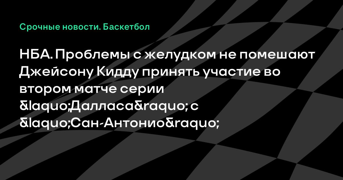 НБА. Проблемы с желудком не помешают Джейсону Кидду принять участие во втором матче серии «Далласа» с «Сан-Антонио»