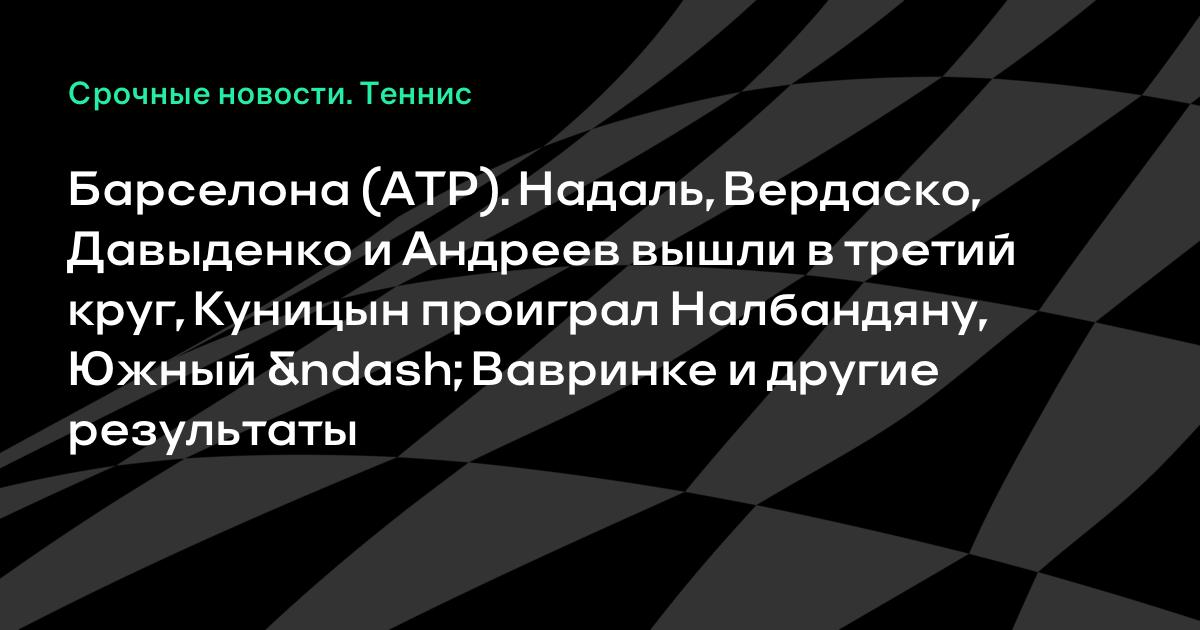 Барселона (АТР). Надаль, Вердаско, Давыденко и Андреев вышли в третий круг, Куницын проиграл Налбандяну, Южный – Вавринке и другие результаты